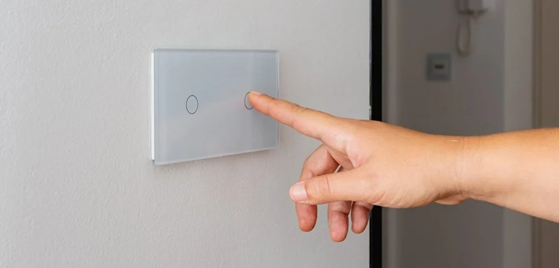 Interruptores touch Wi-Fi integram-se nativamente com assistentes de voz, permitindo controlo mãos-livres.