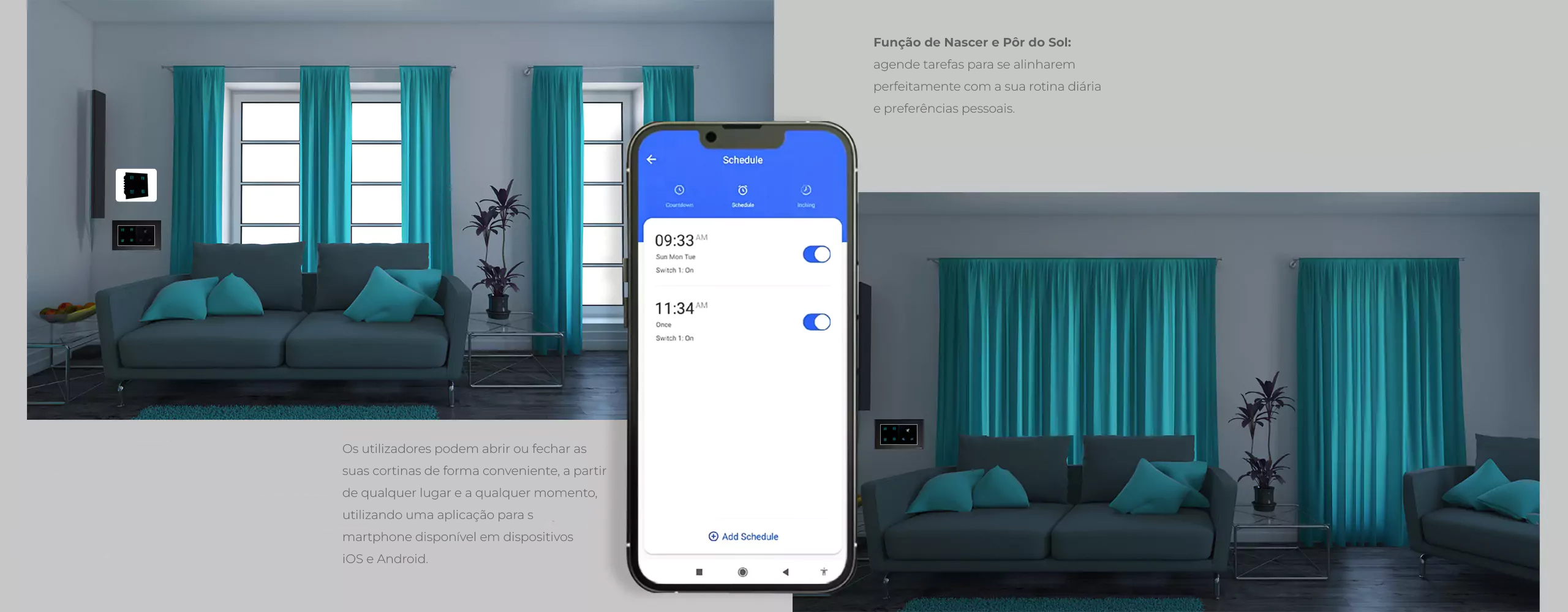 Função Inteligente de Nascer e Pôr do Sol, Compatível com Tuya e Facilmente Configurável na App